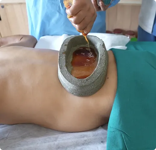 It is a warm medicated Ayurvedic oil, made by making a herbal paste boundary along the whole spine.