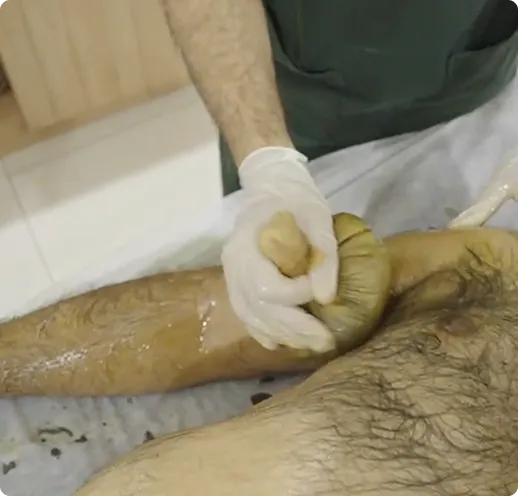 Lepam is an Ayurvedic therapy in which a broad herbal paste is applied over the body.