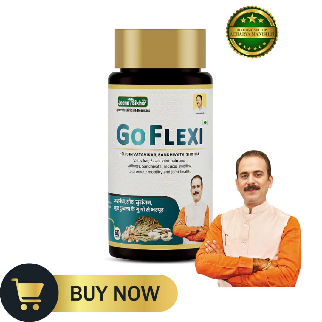 Jeena Sikho Go Flexi is made using the natural ingredients such as Ashwagandha, suranjan mitha, Aloe Vera, and the saunth. These ingredients are known in Ayurveda for supporting joint health.