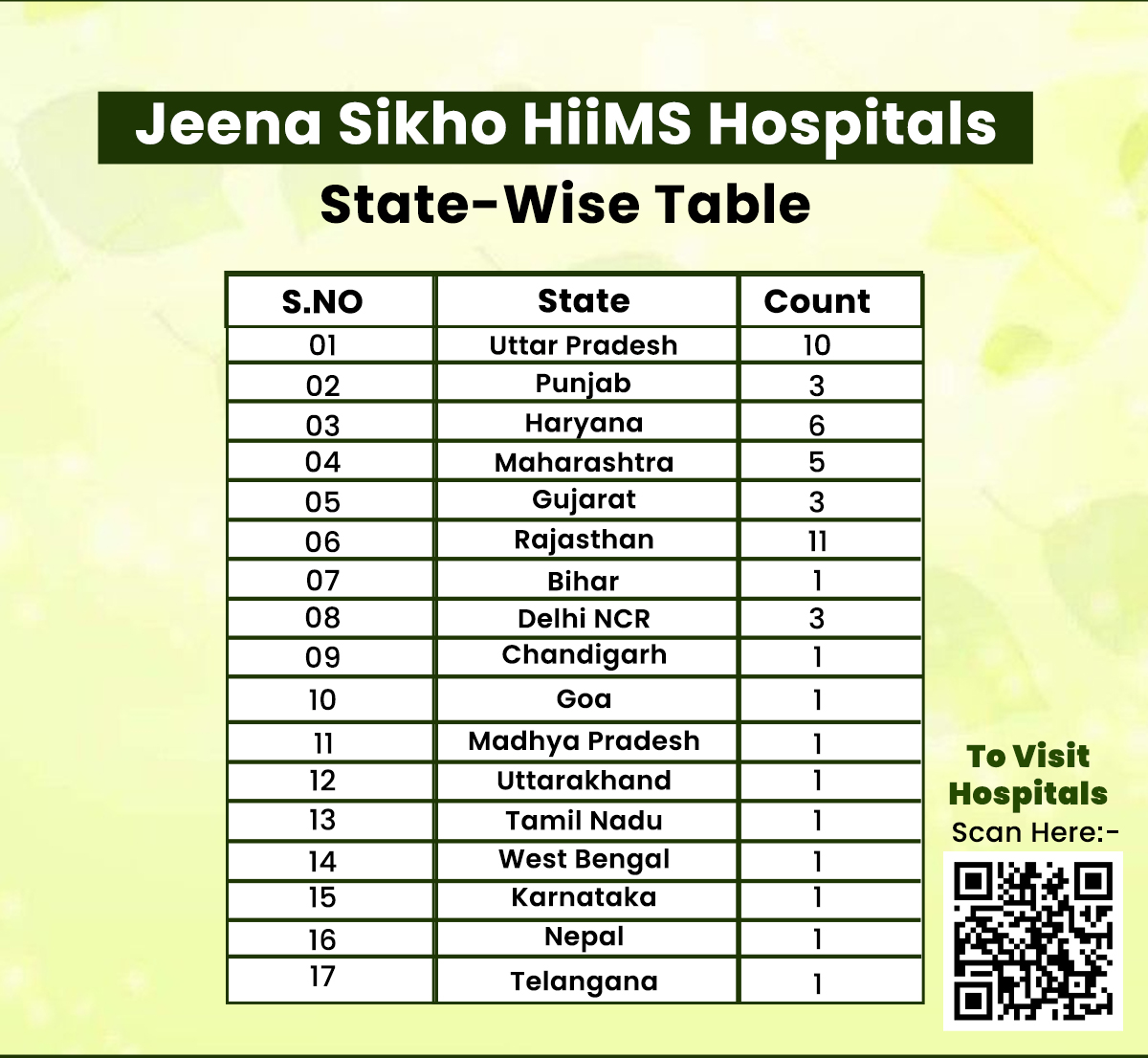 Below is the list of Jeena Sikho HiiMS hospitals at different locations: