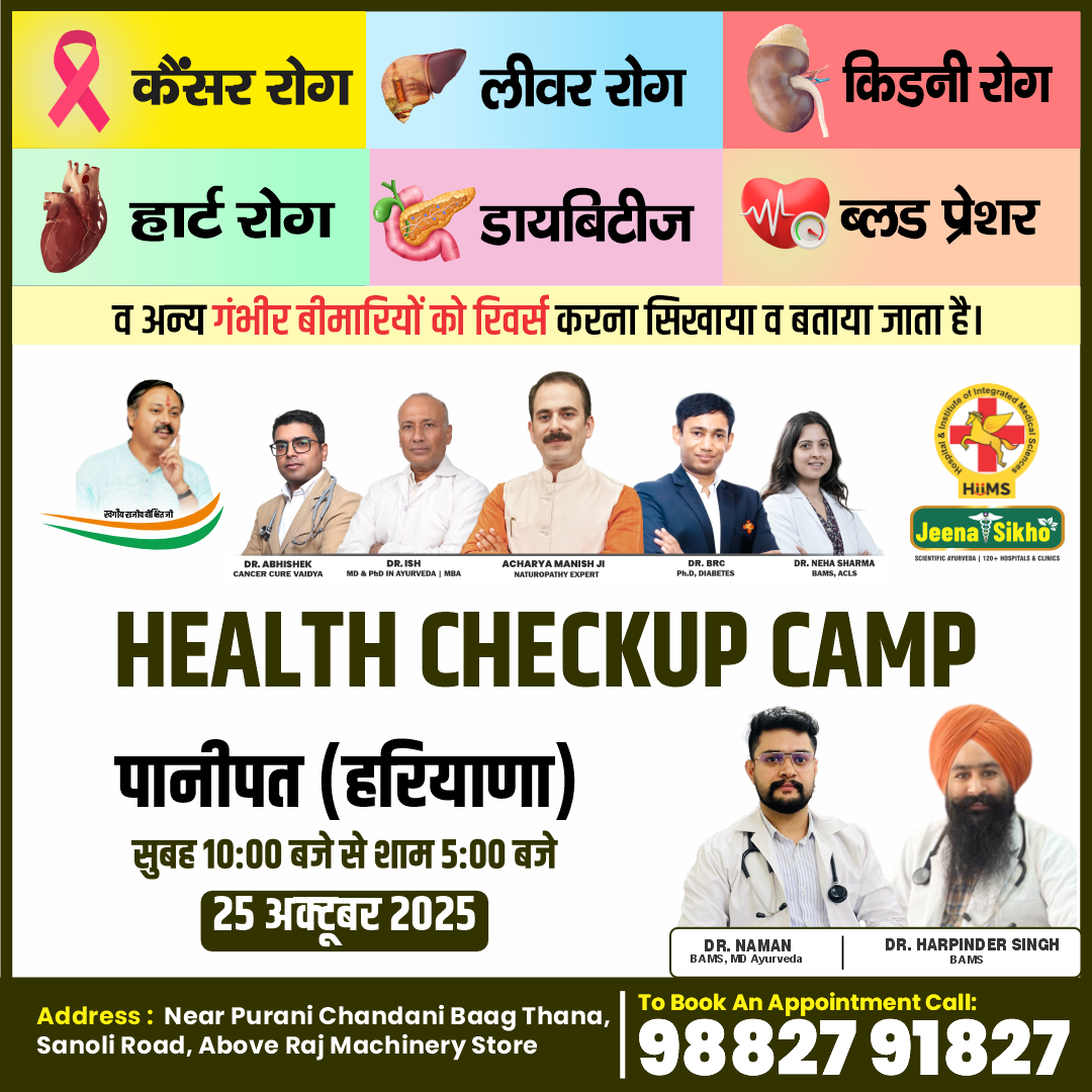 HiiMS Hospital specializes in managing chronic and lifestyle-related conditions naturally. Common conditions include diabetes, high blood pressure, thyroid disorders, fatty liver, kidney diseases, cancer support care, joint pain, asthma, skin diseases, and digestive disorders. They use Ayurvedic therapies, diet, detoxification, yoga, and natural healing methods.