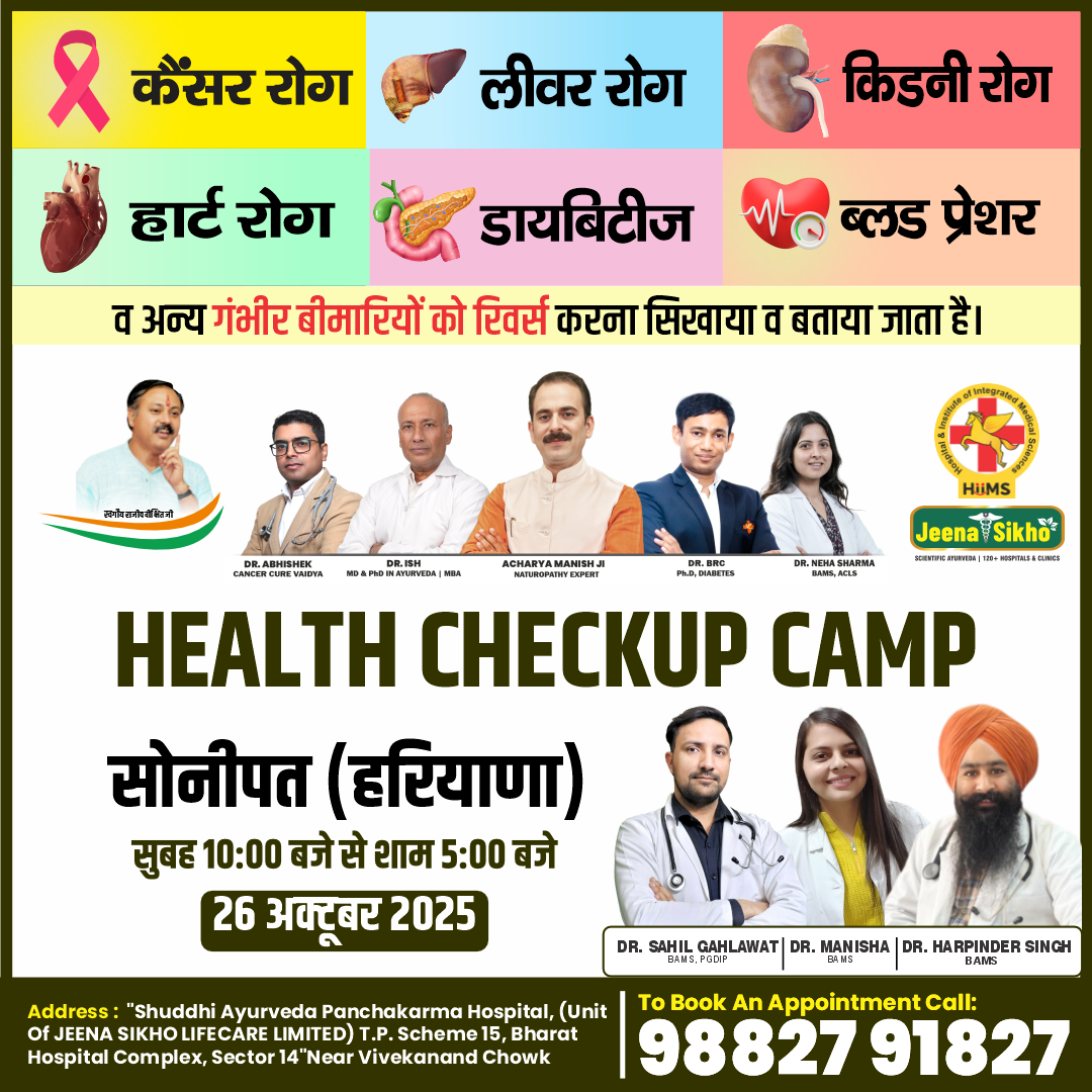 Shuddhi Ayurveda Panchakarma Hospital(Unit Of JEENA SIKHO LIFECARE LIMITED), T.P. Scheme 15, Bharat Hospital Complex, , Sector 14, Sonipat, Haryana 131001