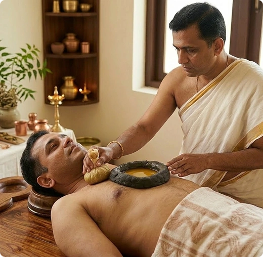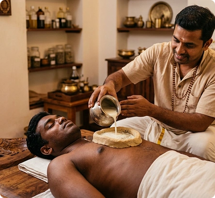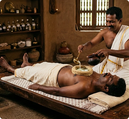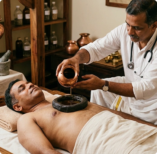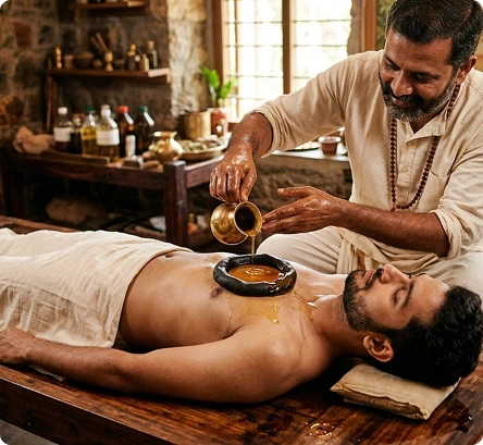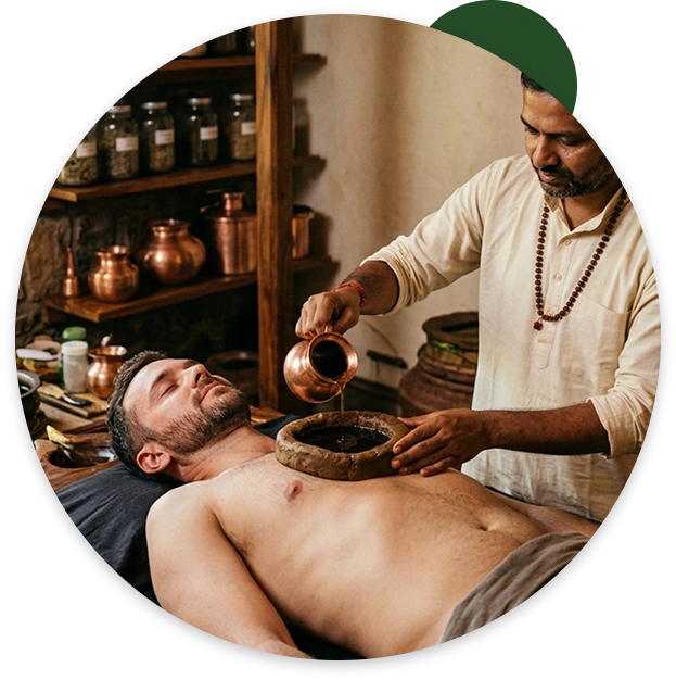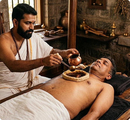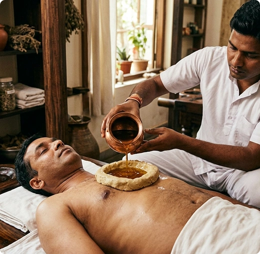 Ancient Ayurvedic Therapy: Hriday Basti is a traditional Ayurvedic therapy where warm medicated oil is gently retained over the heart region for a specific period, following classical healing principles practiced for centuries.