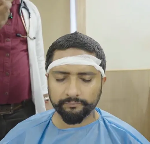A cotton swab soaked in herbal medicated oil is placed on the head for a specific duration.