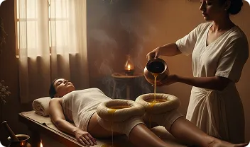 The therapy is based on the principles of Snehana (oil therapy) and Swedana (heat therapy).