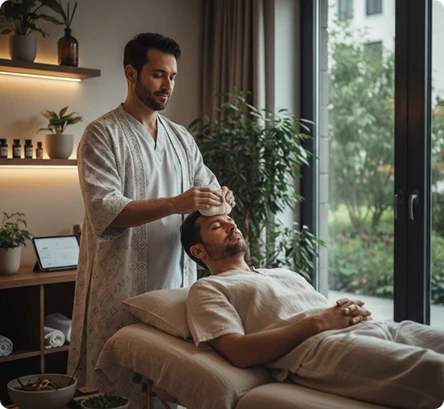Shiro Pichu is an Ayurvedic therapy that eases head tension by reducing stress, mental fatigue, and nervous strain. It is done in three steps, each helping provide deeper relaxation and better nervous system support.