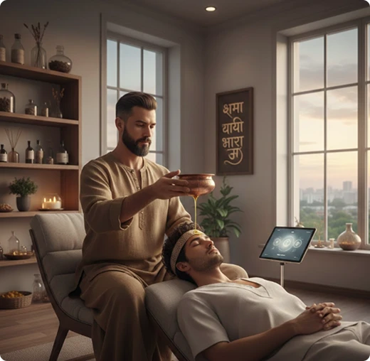 In modern Ayurvedic practice, Shiro Pichu is performed as a structured clinical procedure and continues to be valued for long-term mental calmness, stress management, and nervous system support.